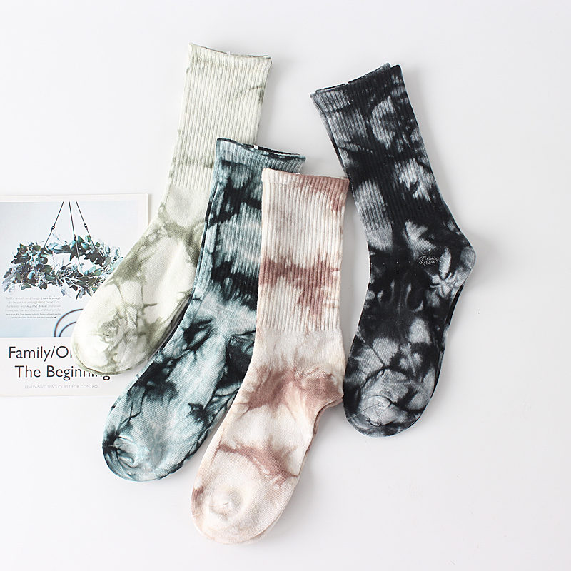 扎染袜子春夏季薄中筒男女情侣ins欧美街头高筒潮袜春秋纯棉长袜