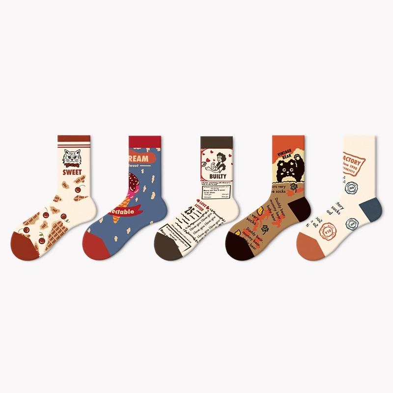 牵手袜子男女春秋中筒夏季情侣可爱磁吸搞怪卡通吸湿透气女中筒袜