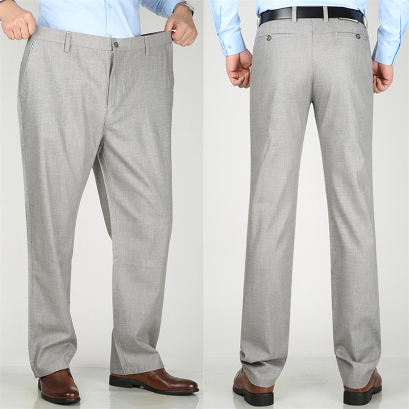 中老年男裤夏季薄款亚麻裤男加肥加大码中年男士休闲裤夏天爸爸裤