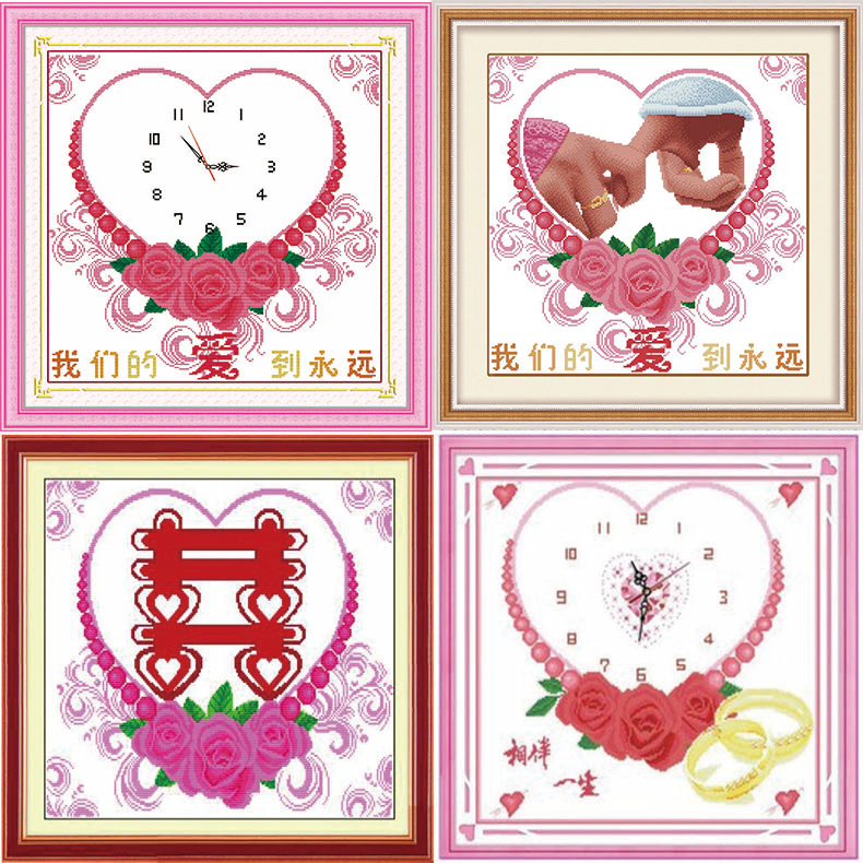青飞精准我们的爱到永远永结同心十字绣钟表约定相伴一生牵手喜庆