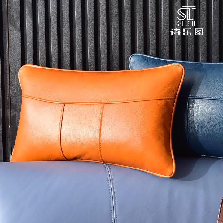 现代轻奢真皮沙发腰枕个性设计简约美式柔软牛皮抱枕家用靠垫定制