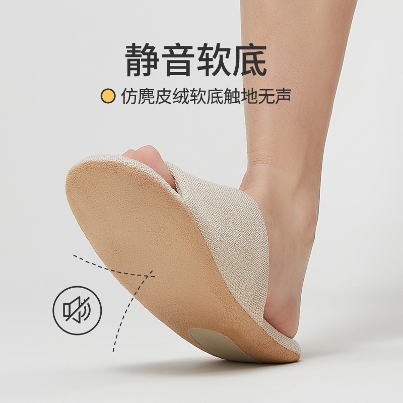 高档日式静音无声拖鞋男女居家用室内木地板春秋季软底防滑棉麻拖