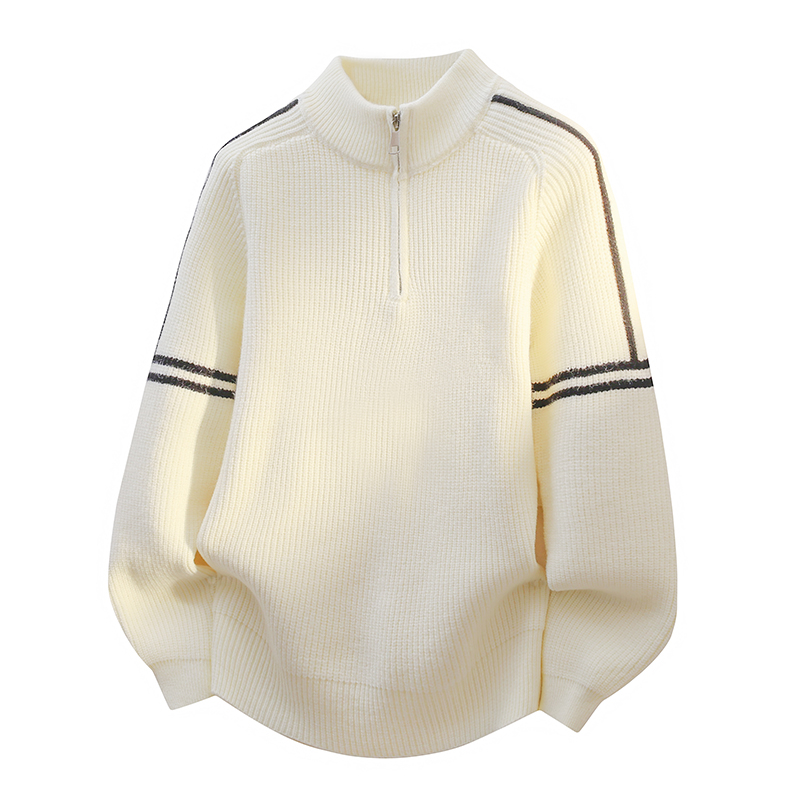 半高领拉链立领毛衣男秋冬季新款加绒加厚学生毛线衣青少年针织衫