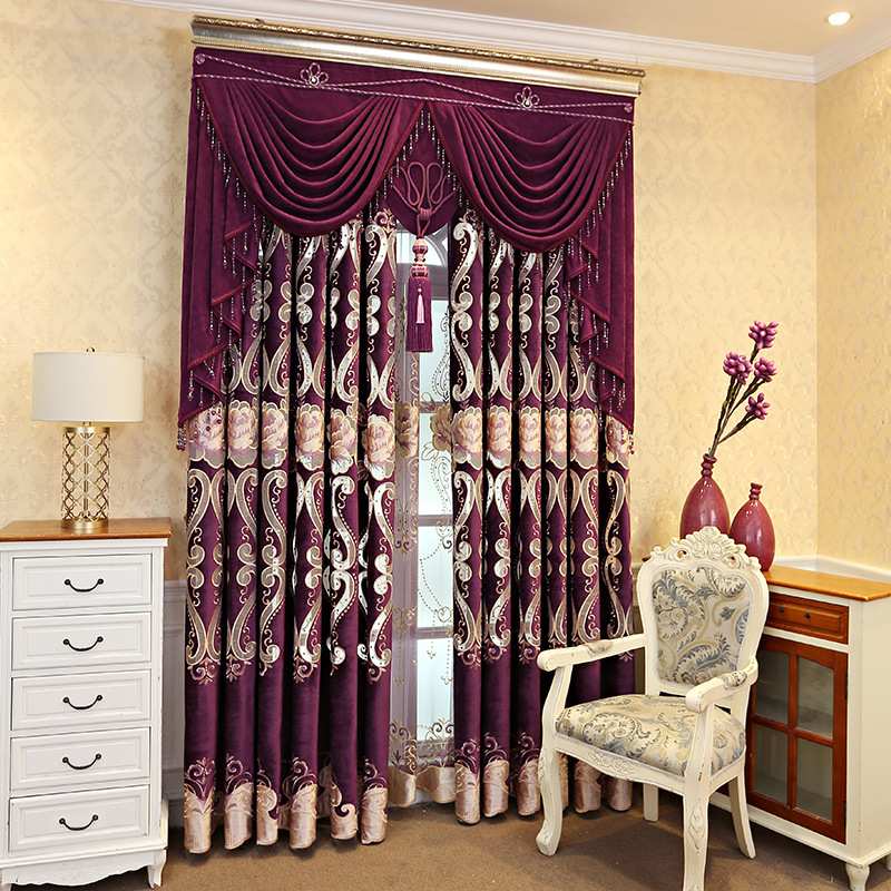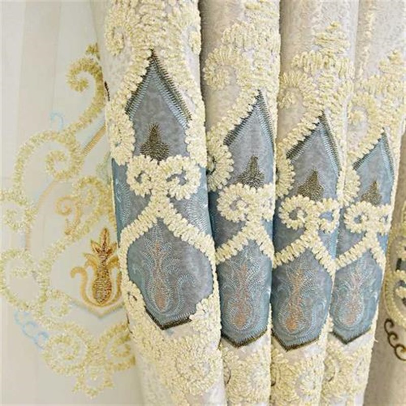 新款欧式绣花窗帘卧室简约客厅奢华雪尼尔高档大气成品遮光落地窗