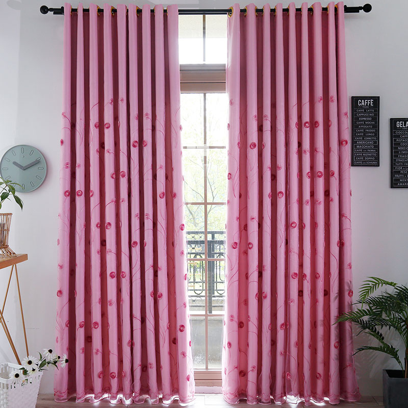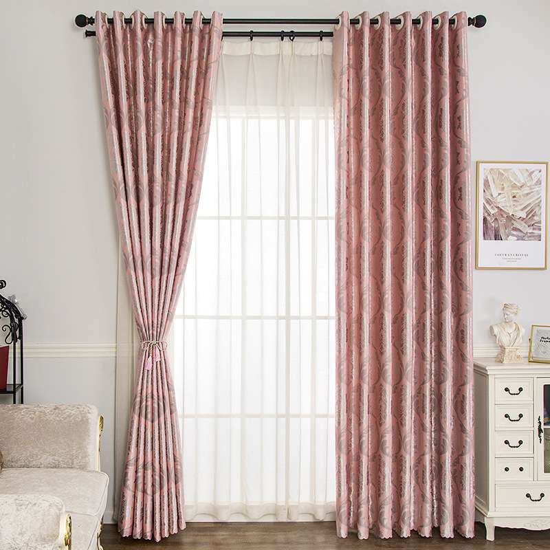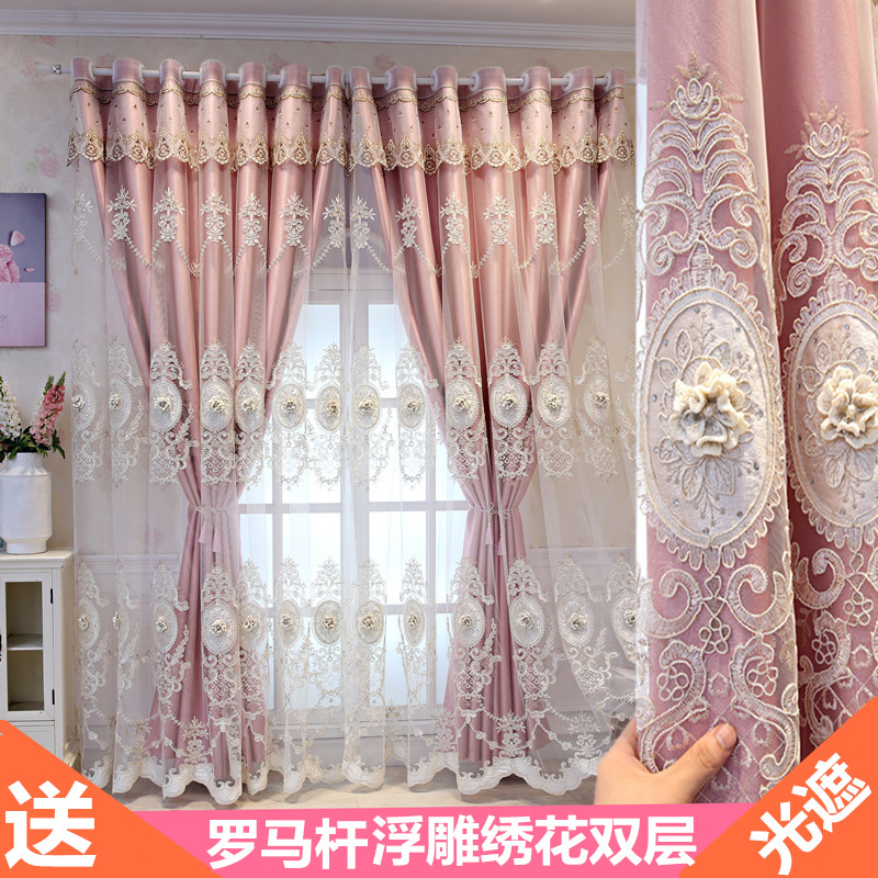 欧式简约双层窗帘粉色布纱一体成品奢华大气客厅卧室浮雕绣花窗帘