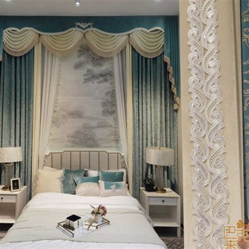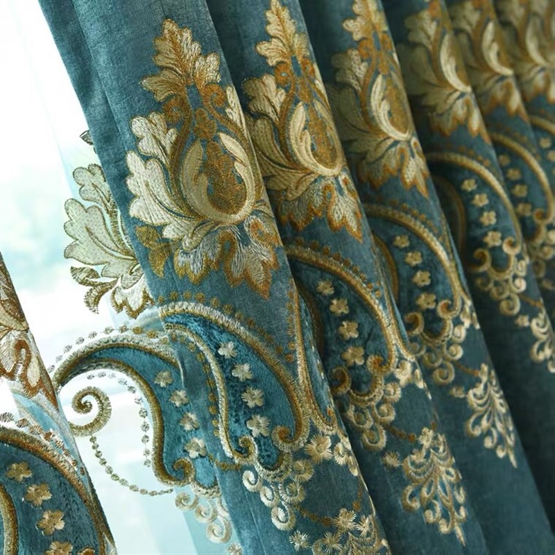 现代美式简约大气加厚高精密绣花 窗帘轻奢欧式客厅卧室遮光法式