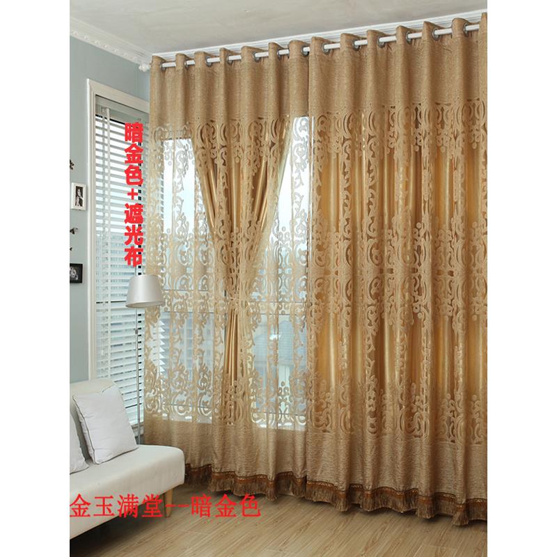 简约欧式双层遮光布纱一体成品客厅卧室奢华大气浮雕绣Y花窗帘定
