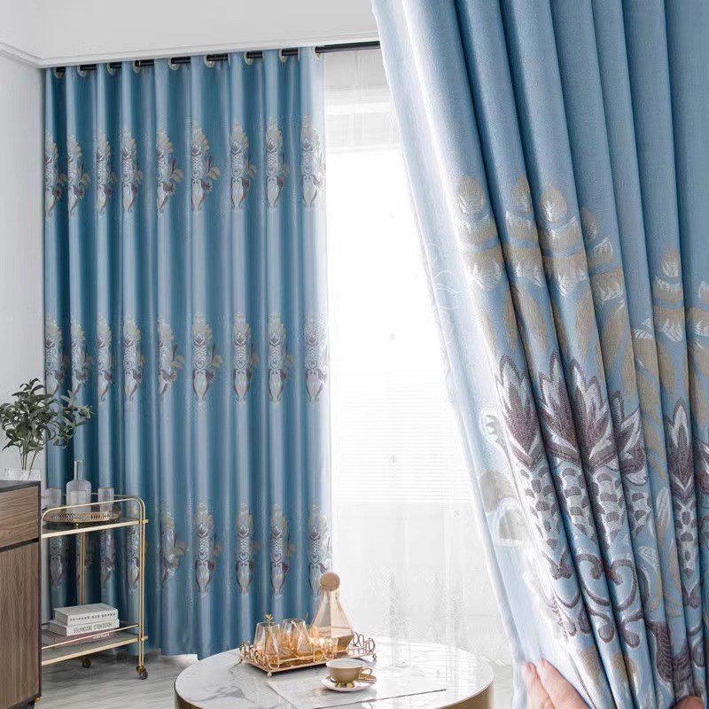 简约欧式大气轻奢浮雕绣花纱窗帘新款客厅卧室成品双层全遮光