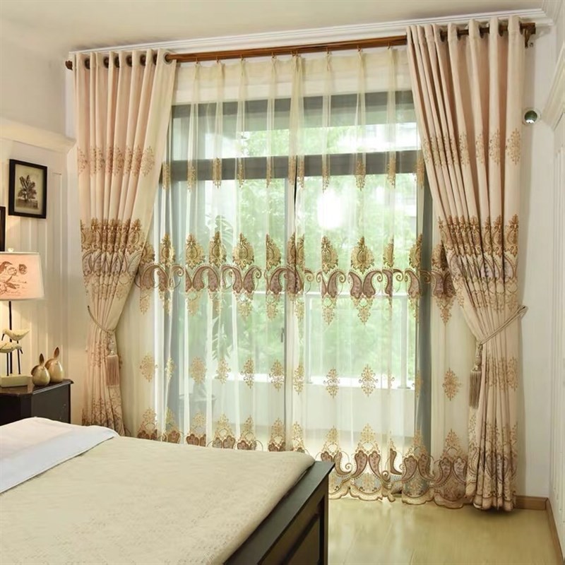 欧式绣花窗帘成品简约客厅卧室飘窗落地窗帘双层隔热遮光大气北欧