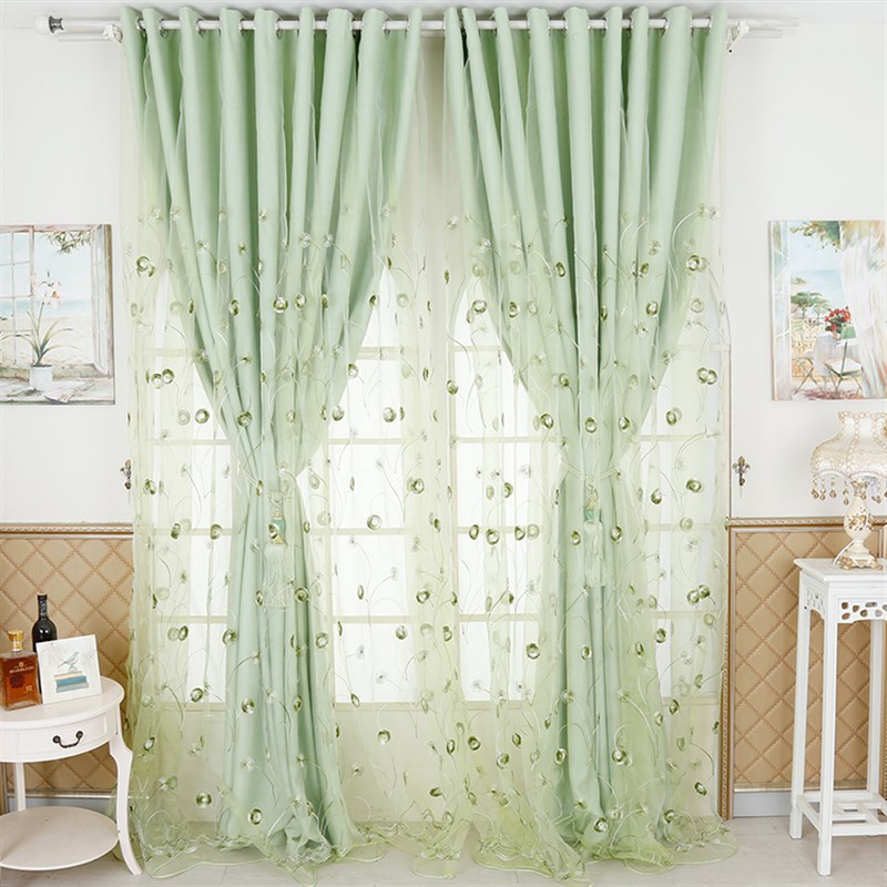 简约欧式卧室加厚遮光布纱一体成品客厅双层大气浮绣花窗帘