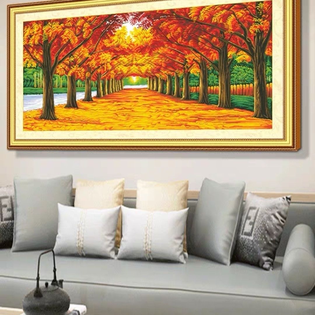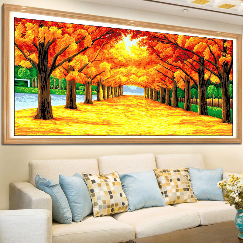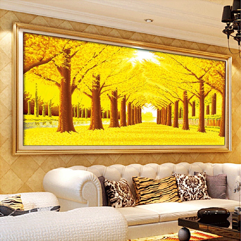 十字绣新款黄金满地2024客厅办公室简约现代金色大道非满绣36色