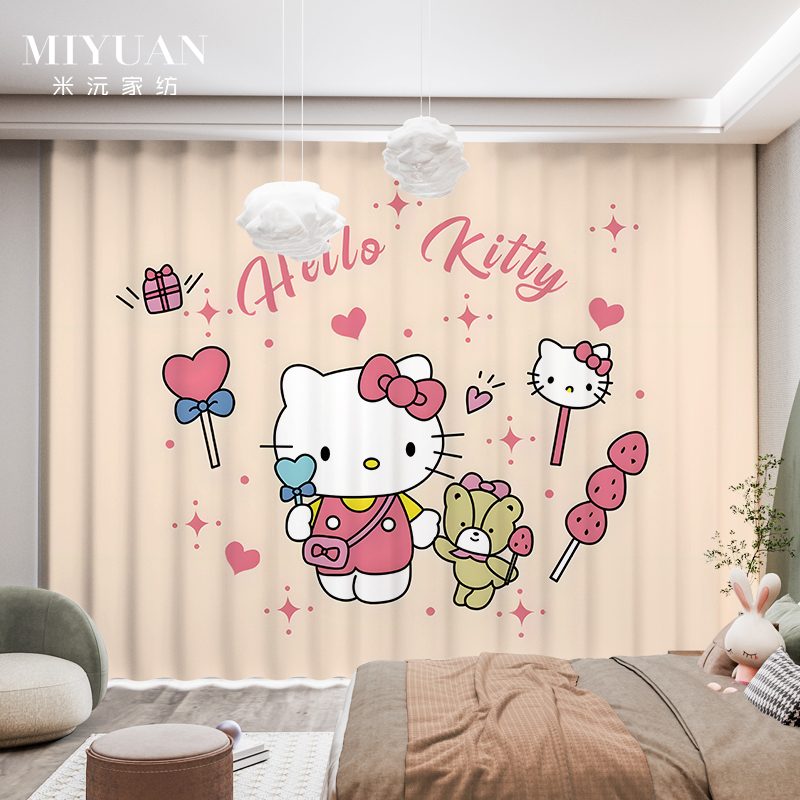 卡通可爱儿童房女孩卧室房间遮光粉色公主风HelloKitty凯蒂猫窗帘