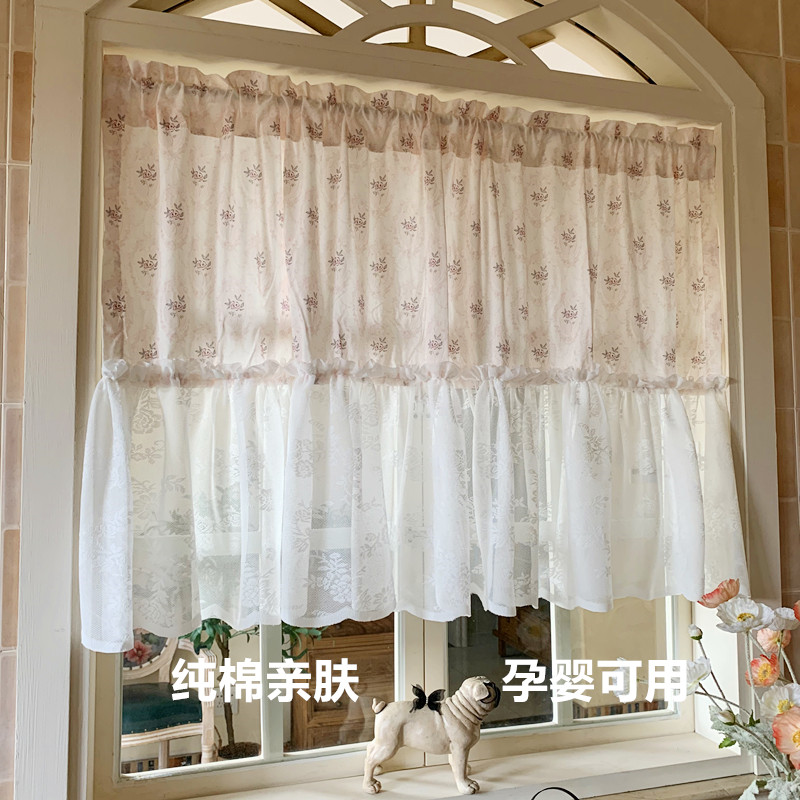 卧室复古梦幻帘伸缩杆窗帘儿童房阳台半截短帘粉色房间窗户遮挡帘