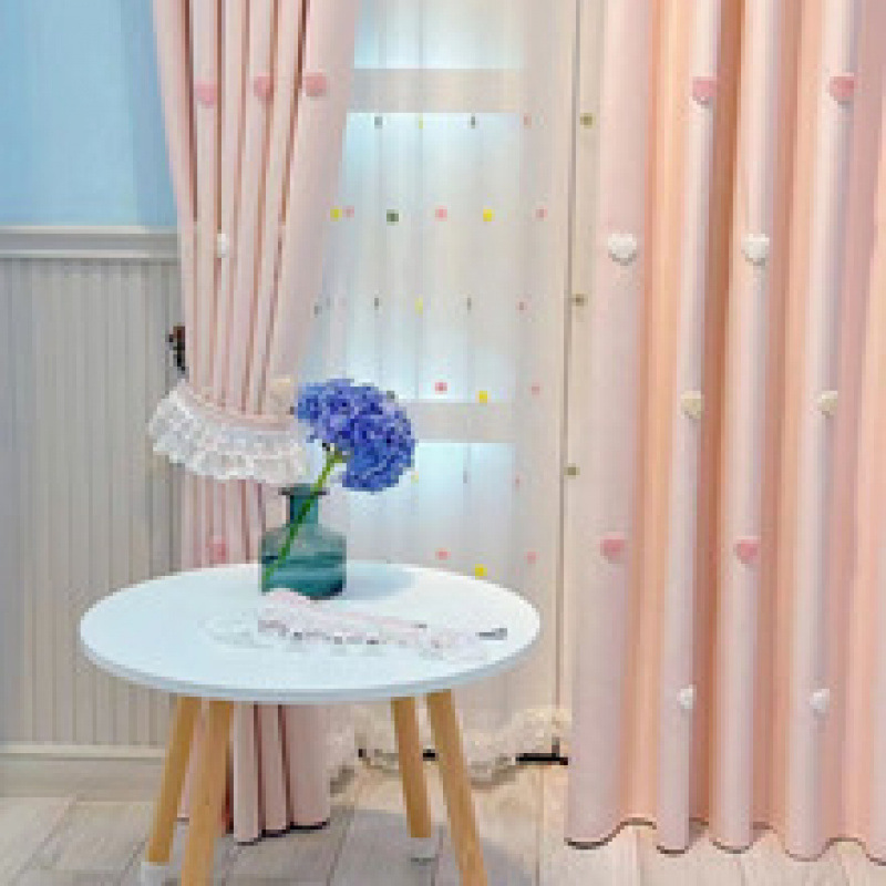 儿童房窗帘2024年新款雪尼尔爱心型粉色女孩卧室飘窗定制和平之心
