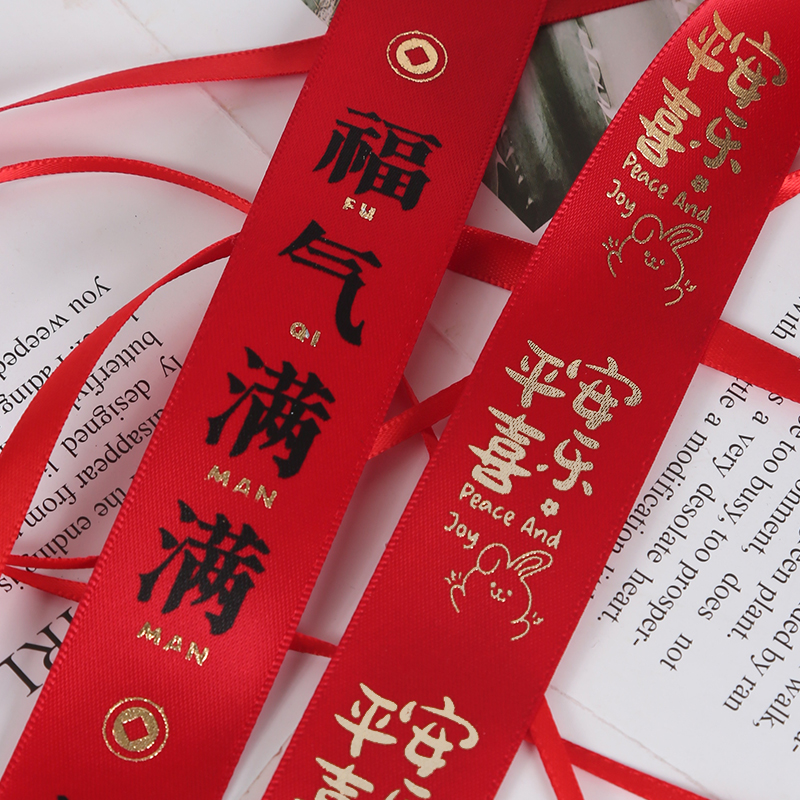 新年祝福语红色丝带平安好运暴富礼物礼品盒包装饰彩带鲜花束缎带