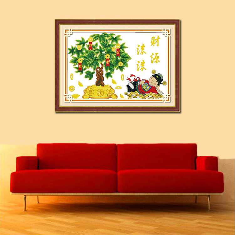 小件十字绣财源滚滚招财进宝2020新款线绣客厅小幅发财摇钱树简单