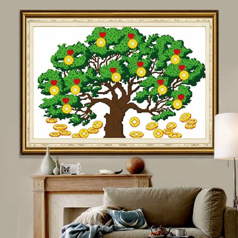 映美大幅大气小件摇钱树简单好看生意兴隆十字绣财源广进黄金满地