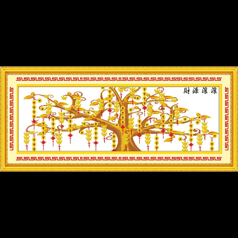 青飞金银同渡财源滚滚摇钱树十字绣黄金发财树客厅九鱼帆船柬埔寨