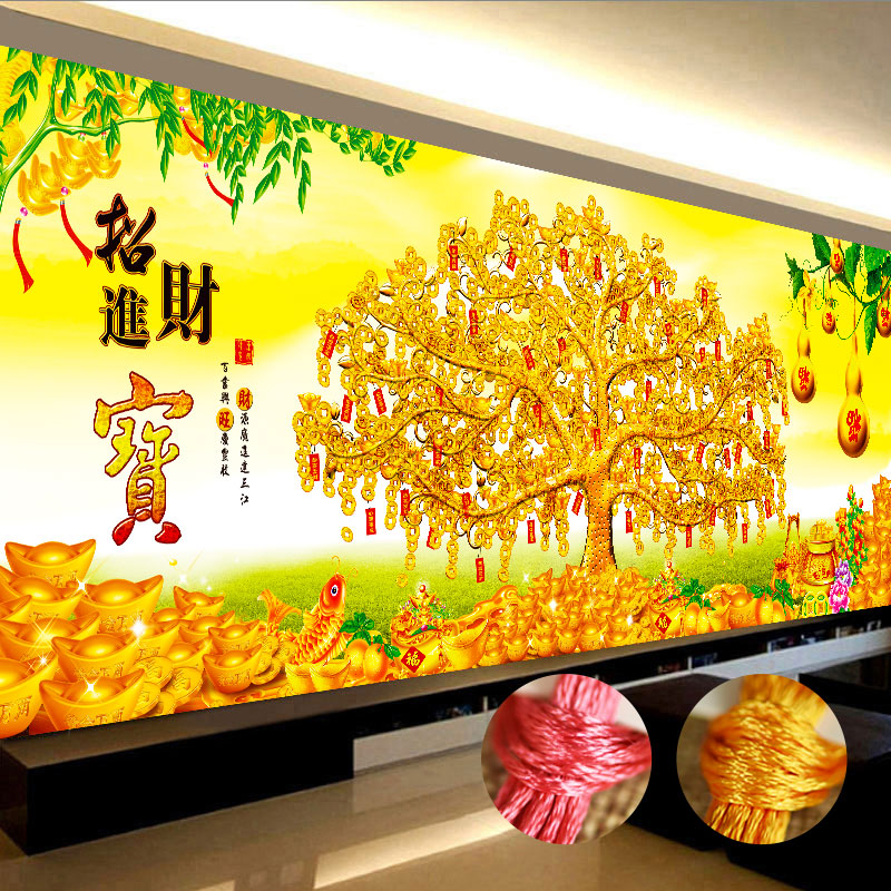新款十字绣财源广进摇钱树发财树财神爷大幅客厅十字绣画印花线绣