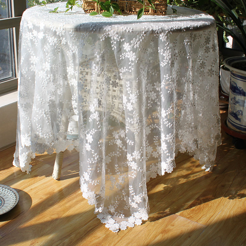 高档外贸欧式阳台飘窗小圆桌桌布纯白色方巾蕾丝网纱刺绣台布布艺