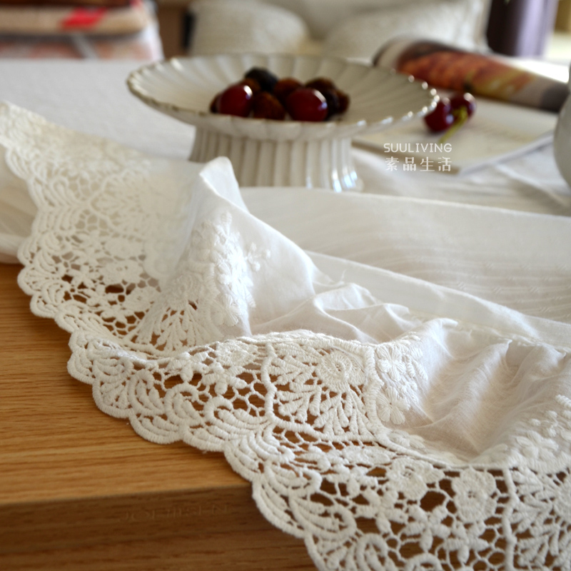 刺绣餐桌布台布棉麻绣花长方形白色蕾丝茶几布艺盖巾欧式田园客厅