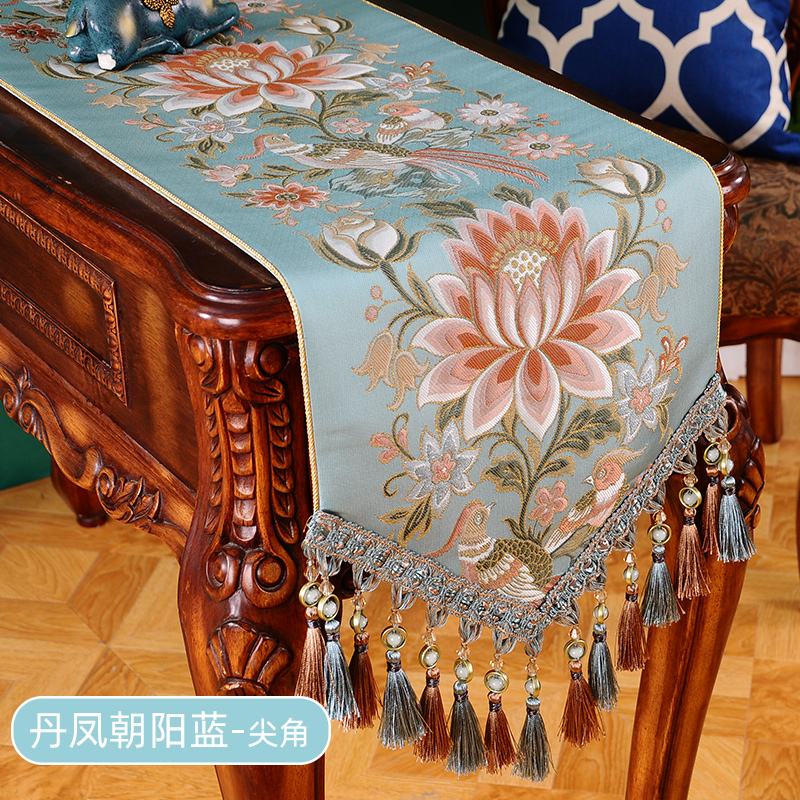 外贸新中式美式欧式布艺刺绣桌旗流苏餐桌布茶几巾台布电视柜盖巾