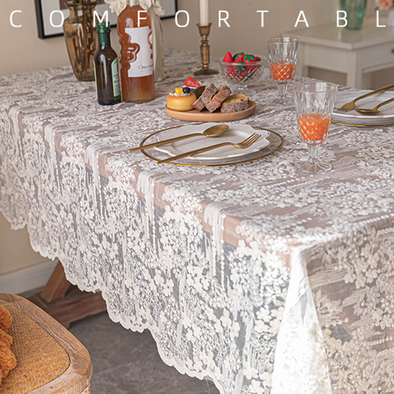 法式浪漫蕾丝白色桌布镂空美式提花盖巾茶几欧式餐桌布复古风刺绣