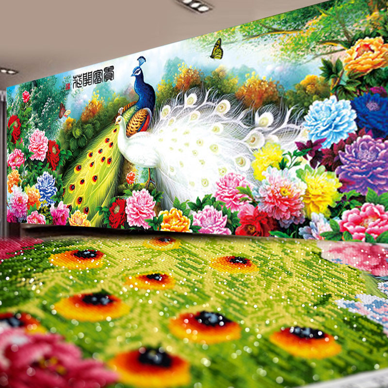 5d钻石画2025年新款满钻客厅花开富贵砖石牡丹孔雀水晶点贴十字绣