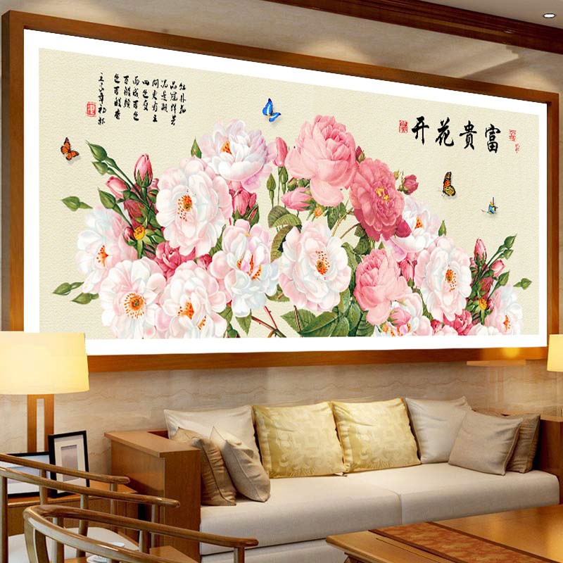 5d钻石画满钻新款客厅牡丹花开富贵手工点贴十字绣砖石绣水晶珠绣