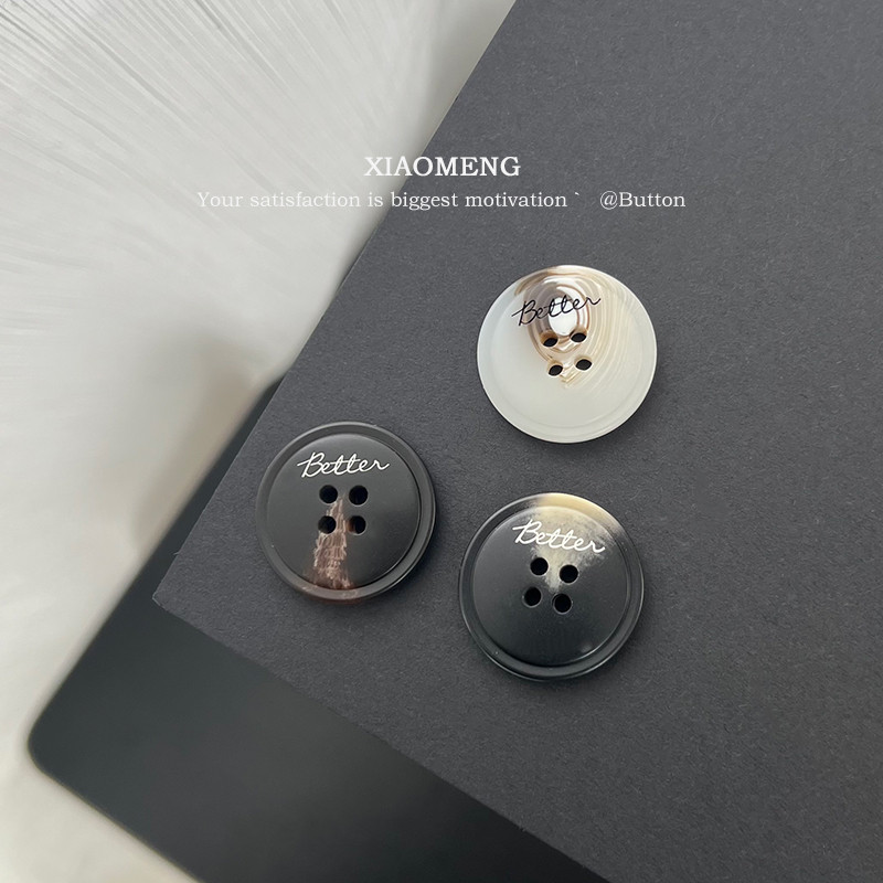 晓梦STUDIO纽扣扣子高档树脂四眼黑花纹扣男西服西正装大衣毛衣扣
