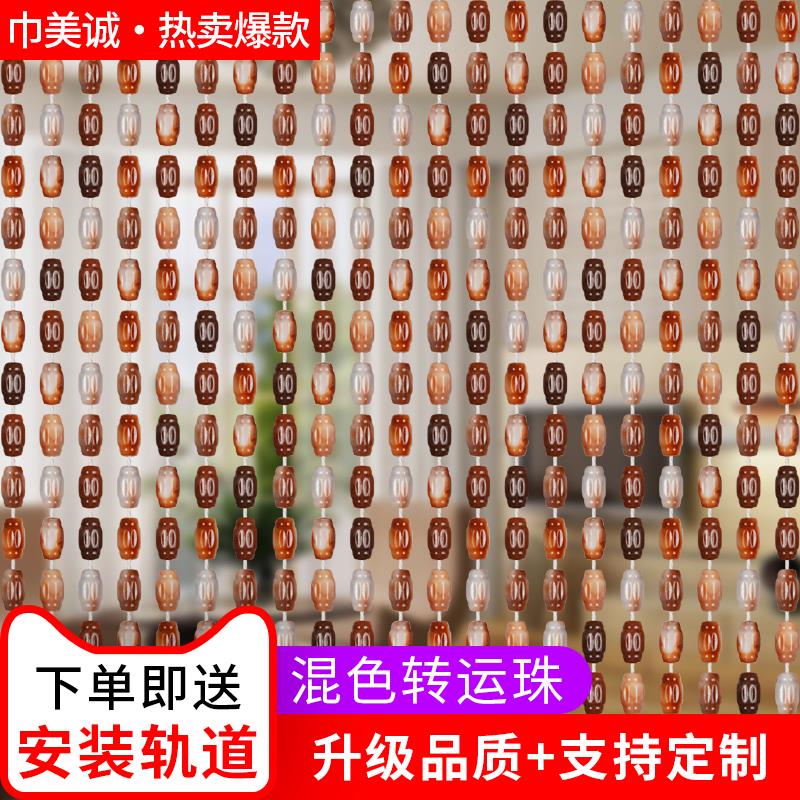 香樟木珠子门帘防蚊蝇实木珠帘夏季家用卧室厨房R客厅玄关隔断帘