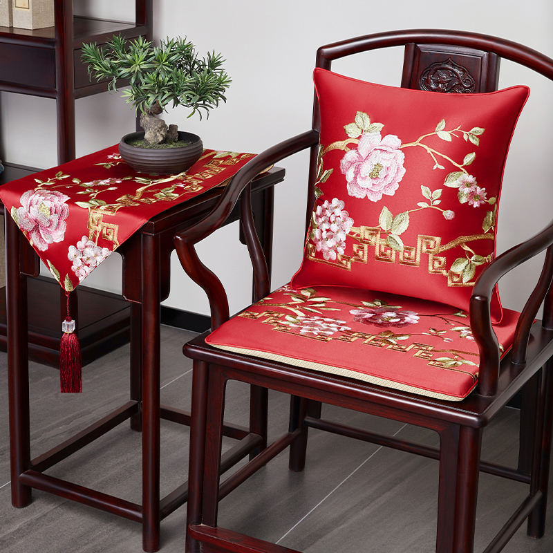 红木沙发椅子坐垫实木绸缎绣花垫子餐椅茶椅圈椅太师椅官帽椅座垫