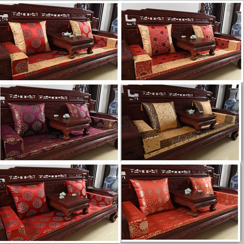 新款定做明清古典中式红木实木家具罗汉床五件套座垫沙发坐垫绸缎