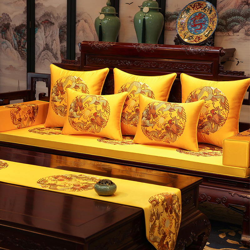 中式红木沙发坐垫实木家具垫定制绸缎刺绣罗汉床垫子五件套中国风