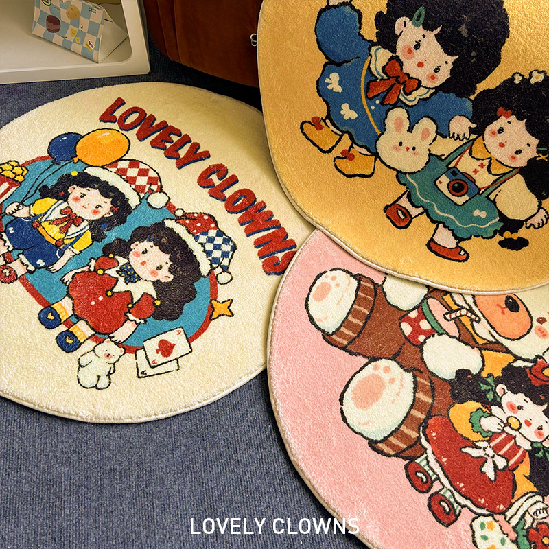 ins风卡通可爱地毯卧室沙发圆形地垫衣帽间梳妆脚垫卧室床边圆毯