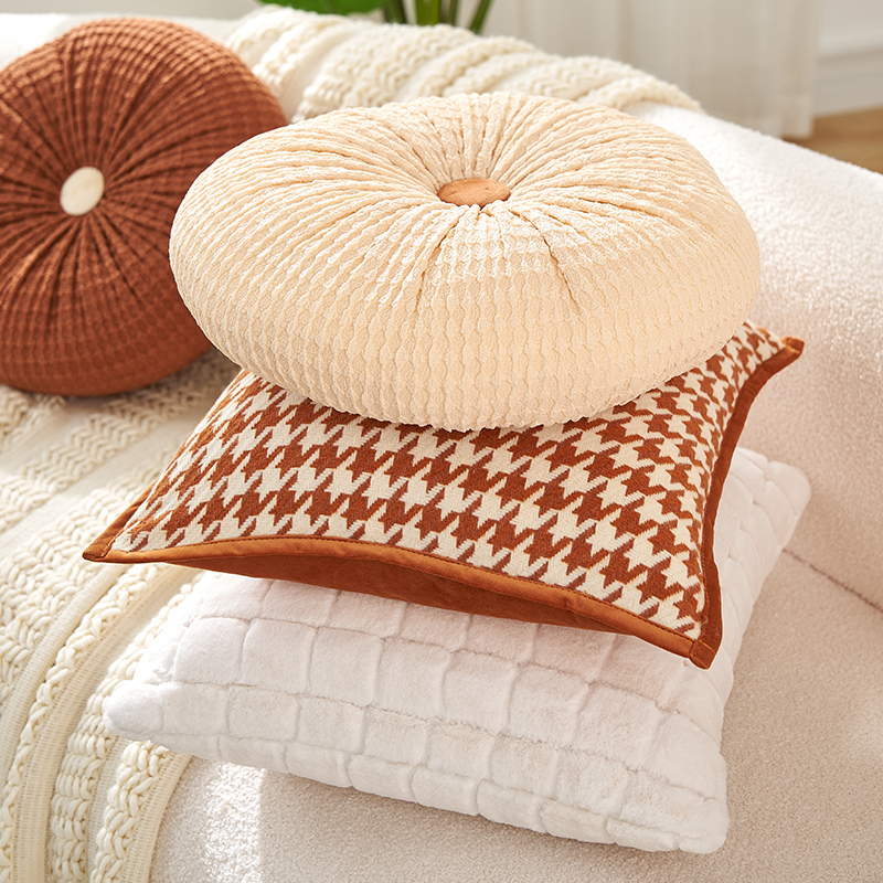 蔓越家 ins公主房可爱奶油色客厅沙发抱枕靠垫护腰靠枕圆形抱枕套