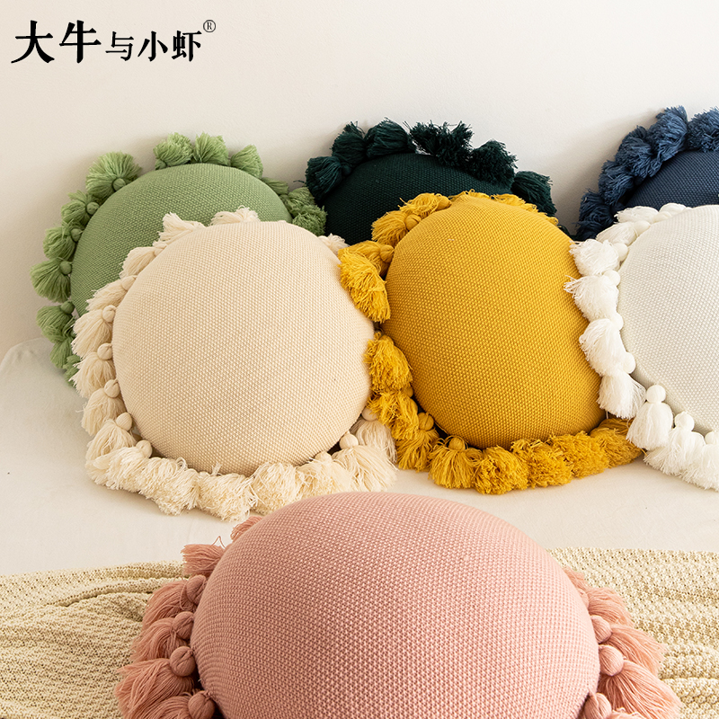 ins法式奶油风可爱圆形手工蒲团靠垫民宿客厅沙发少女心抱枕跨境
