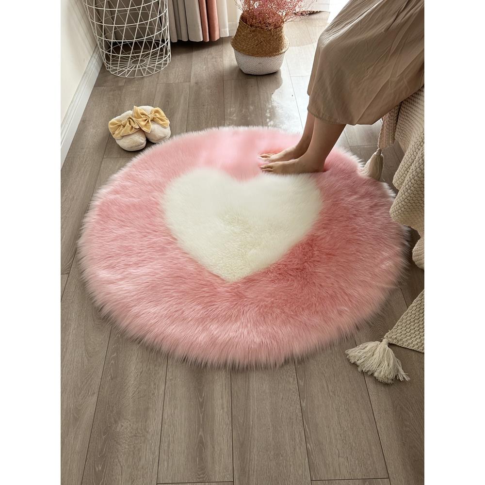 仿羊毛圆形地毯可爱心形地垫沙发垫婚房床边毯椅子垫长毛绒圆垫