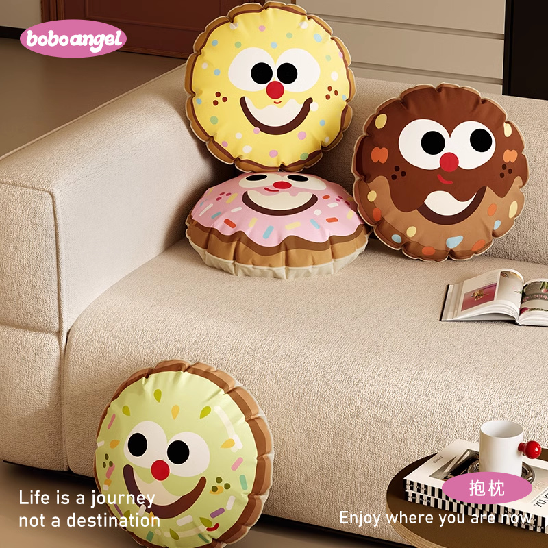 曲奇饼干圆形抱枕毛绒沙发靠垫ins可爱午睡枕头办公腰枕搞怪礼物