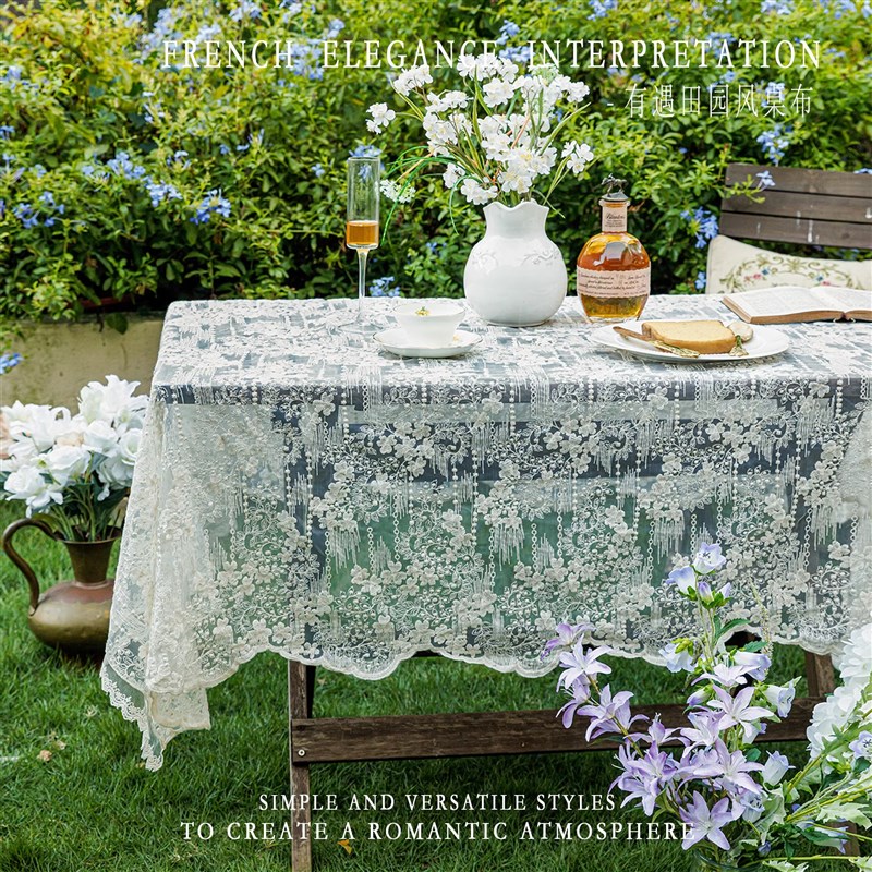 法式ins田园风文艺镂空蕾丝长方形圆形桌布茶几床头柜美式背景布