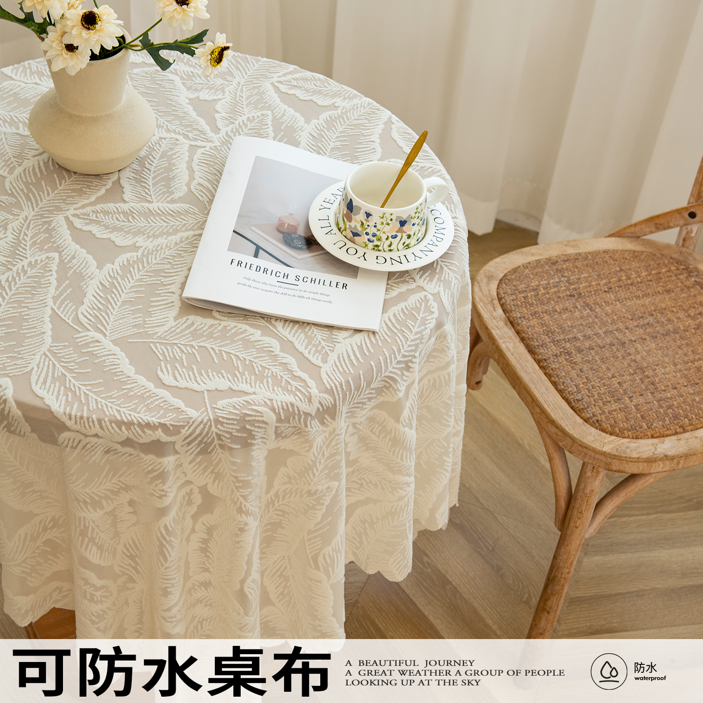 桌布法式田园米色桌旗蕾丝钩针长方形餐桌布盖巾拍照背景布艺台布