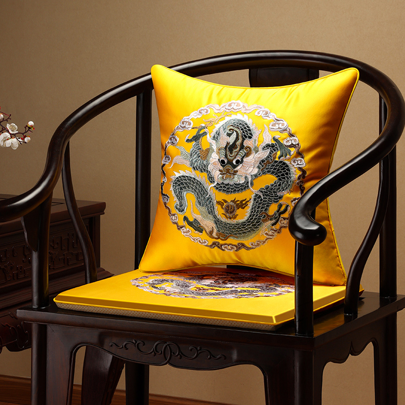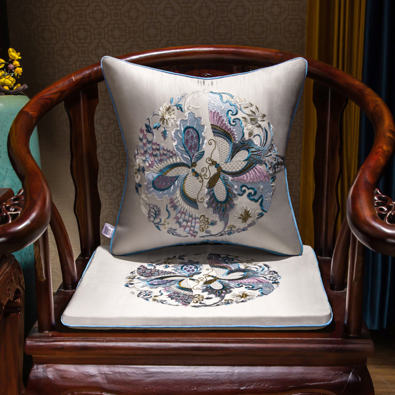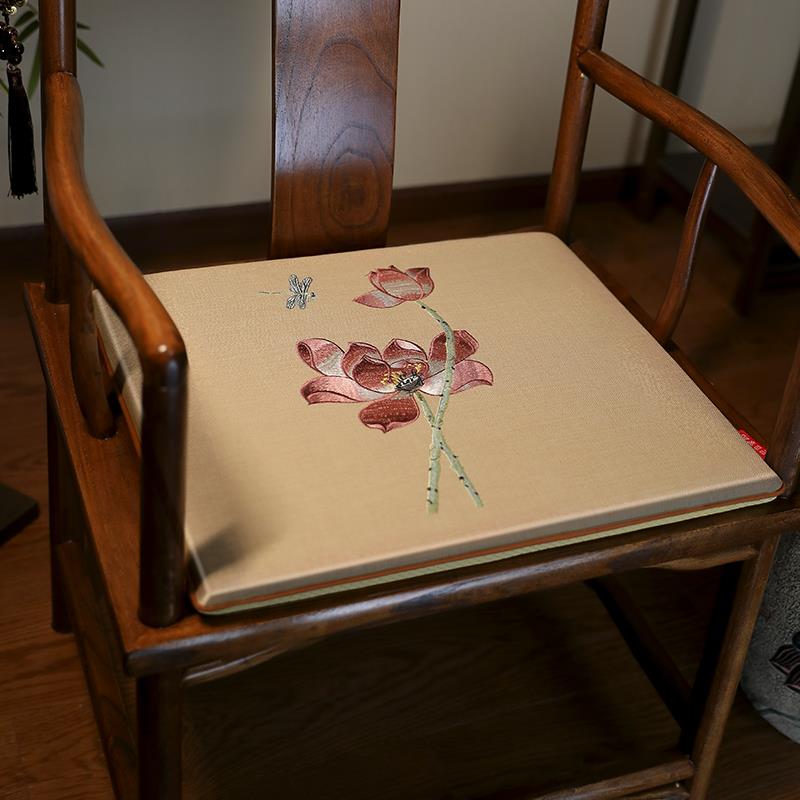 中式椅垫红木沙发坐垫彷真丝绣花新古典实木家具椅子圈椅茶椅座垫