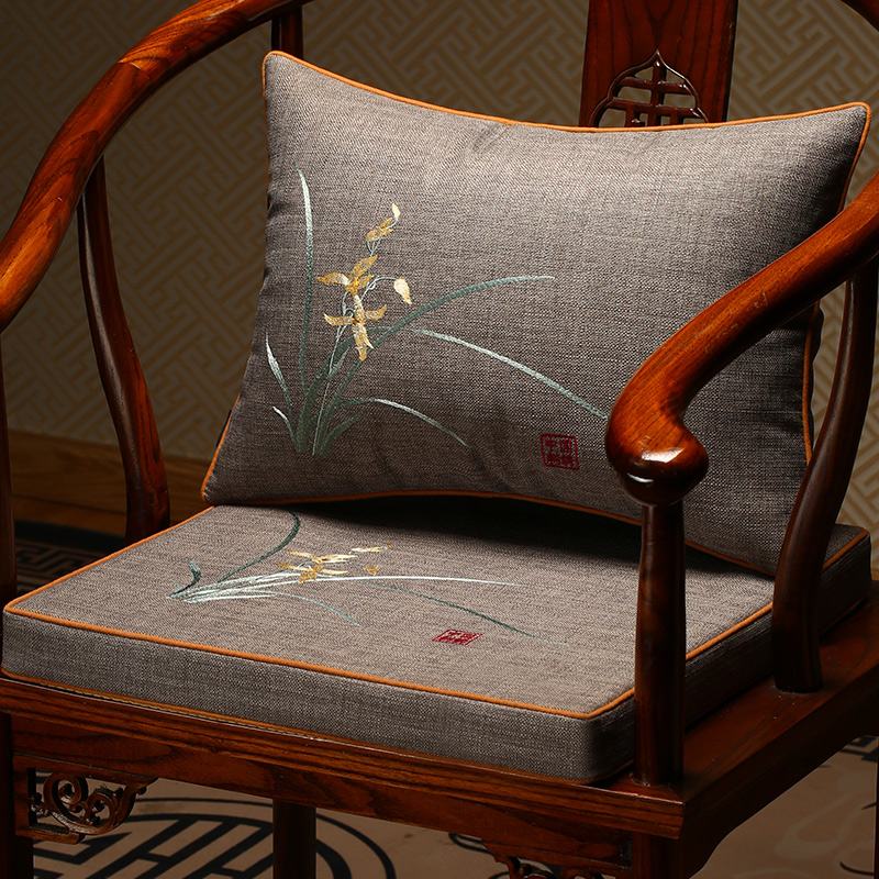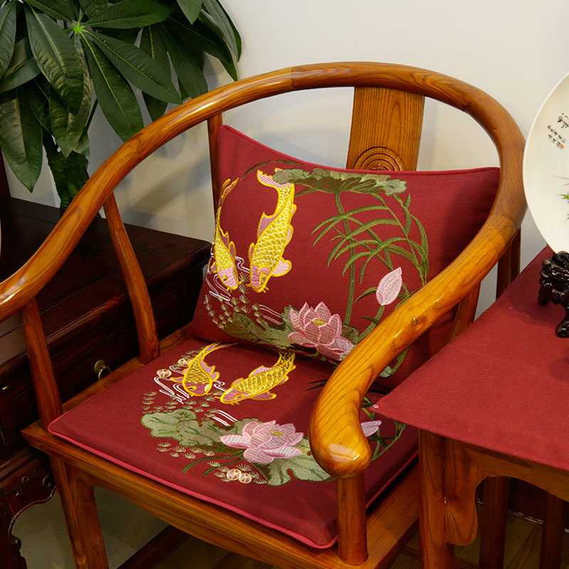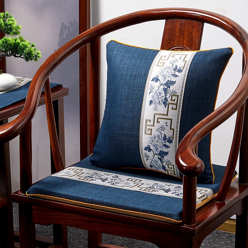 新中式古典实木家具茶桌椅棉麻刺绣红木沙发坐垫圈椅太师椅子定制