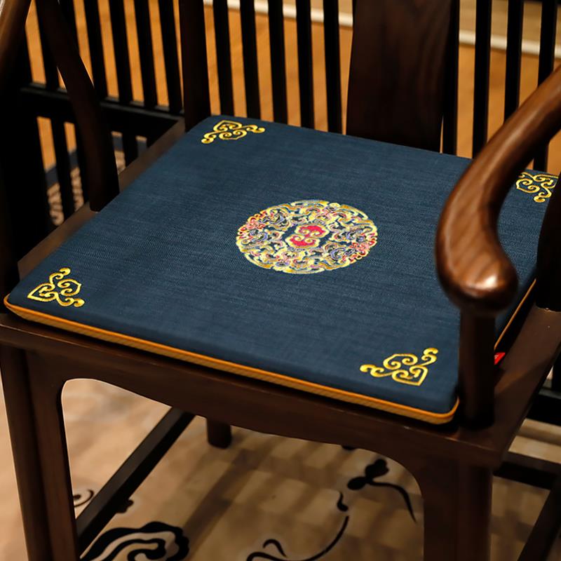 中式坐垫古典实木垫子客厅中古茶椅垫刺绣椅子海绵垫家用定制座垫
