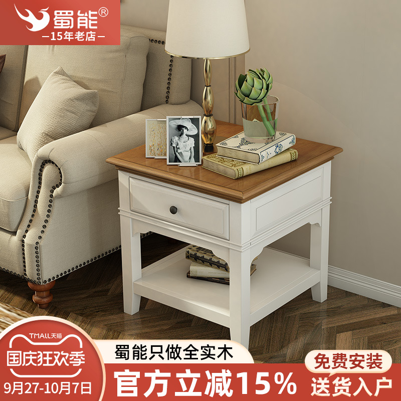 地中海小茶几客厅美式乡村沙发小边几白色田园轻奢小方几实木方桌