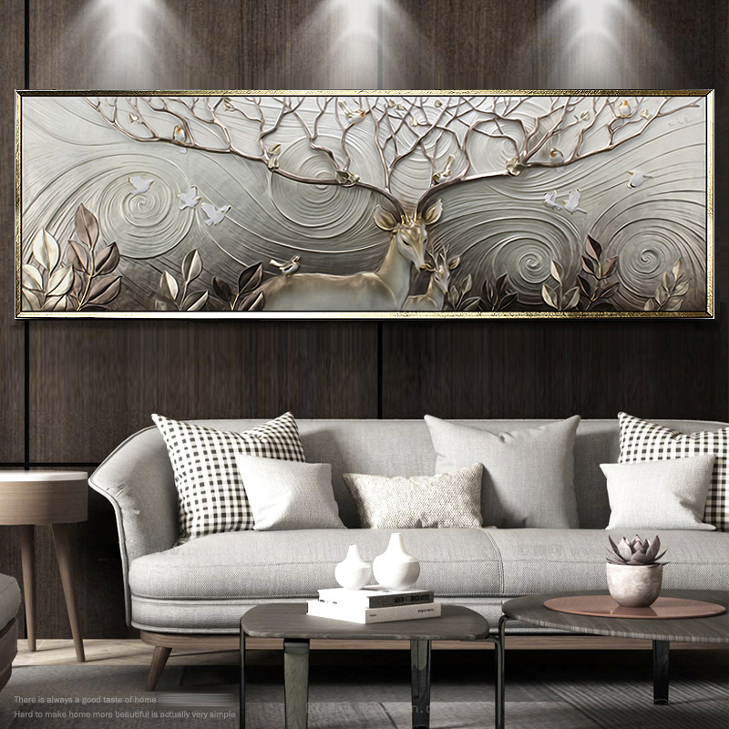 满钻钻石画十字绣现代麋鹿发财树三联画大幅新款客厅简约钻石绣