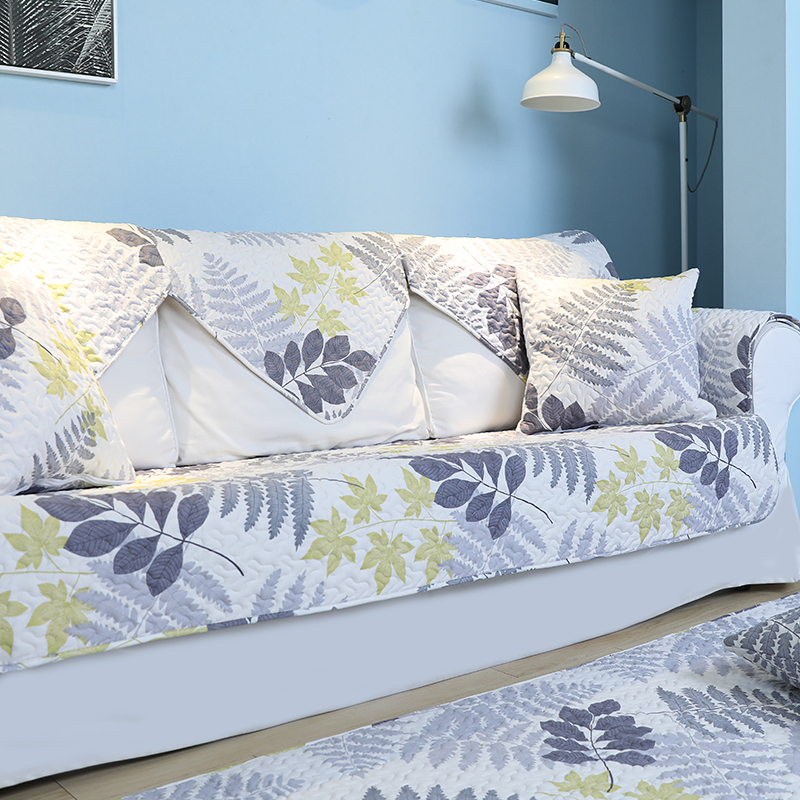 雨朵 绿色小花全棉沙发垫布艺防滑四季通用沙发套罩盖巾贵妃定制