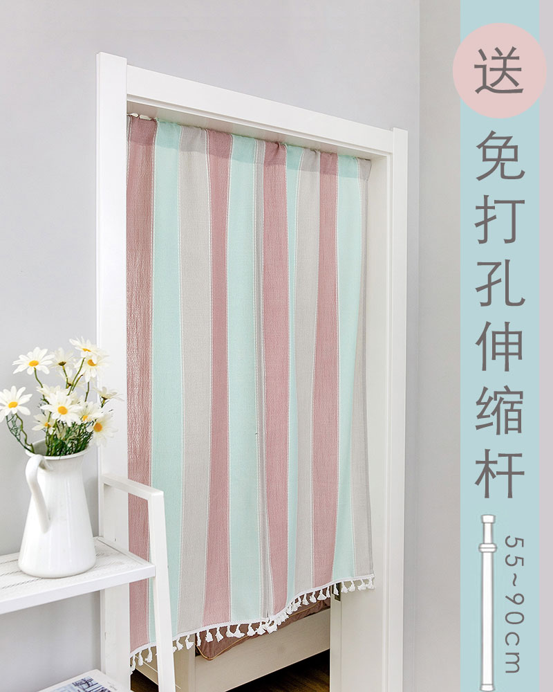 奶系渐变色日系门帘免打孔卫生间玄关卧室北欧半遮挡简约隔断门帘