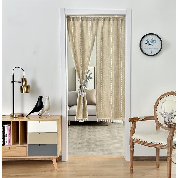日系网红ins棉麻门帘半帘短帘免打孔隔断帘布艺家用卧室厨房过道