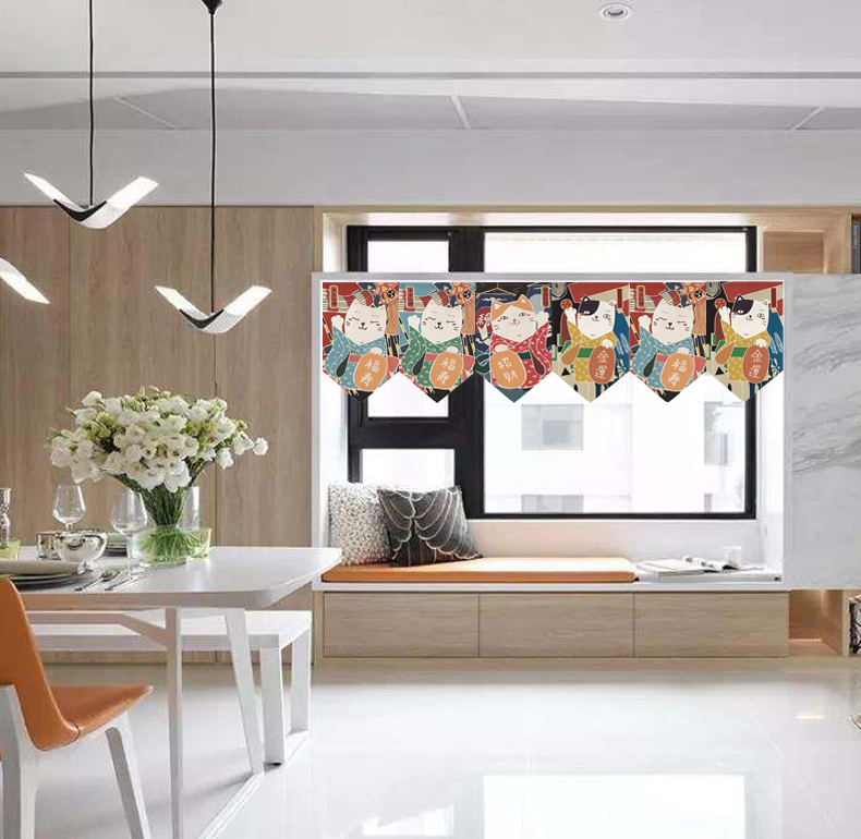 日式门帘布艺猫咪免打孔棉麻可爱卧室日系隔断帘ins家用半帘商用